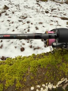 Zakres 1,5–8 g na papierze wygląda szeroko. W moich testach najlepiej blank współpracował z przynętami w okolicach 1-5 gramów – tam rzuty wychodziły najprecyzyjniej, a animacja była najbardziej komfortowa. Przy 2-gramowej przynęcie kij ładnie się ładuje i pozwala na zaskakująco dalekie wyrzuty i to zaskoczyło mnie bardzo mocno. Przez pierwsze wypady często zestawy kończyły na drzewach. Przy 6-7g czuć, że blank jest na granicy komfortu. 8g? Technicznie da się, ale nie o to tutaj chodzi.